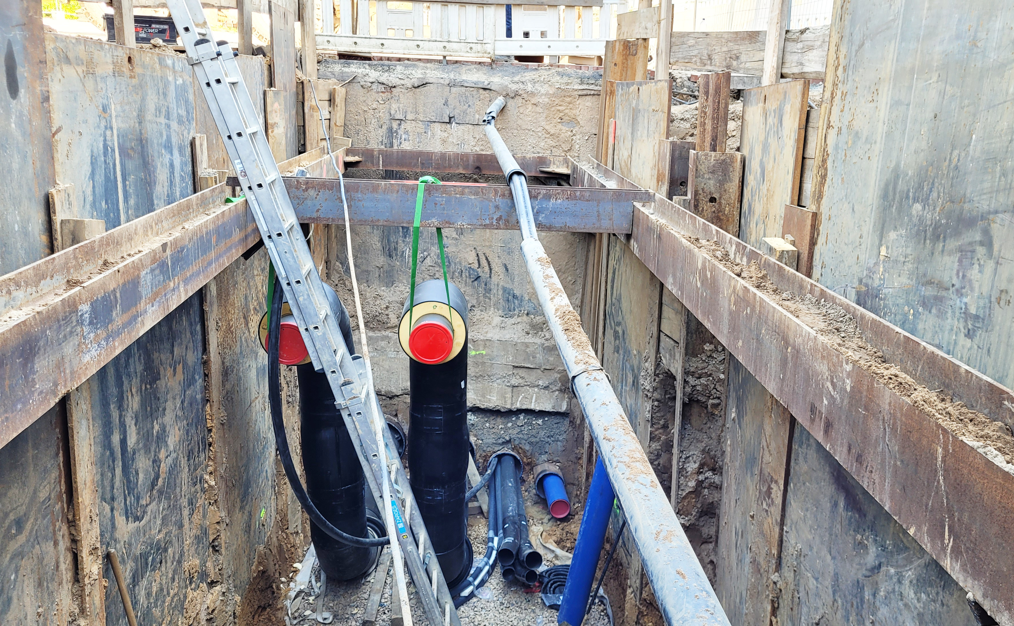 Die Versorgungsleitungen finden hier ihr Zuhause in teilweise 5 Metern Tiefe, unter städtischen Versorgungsschächten.