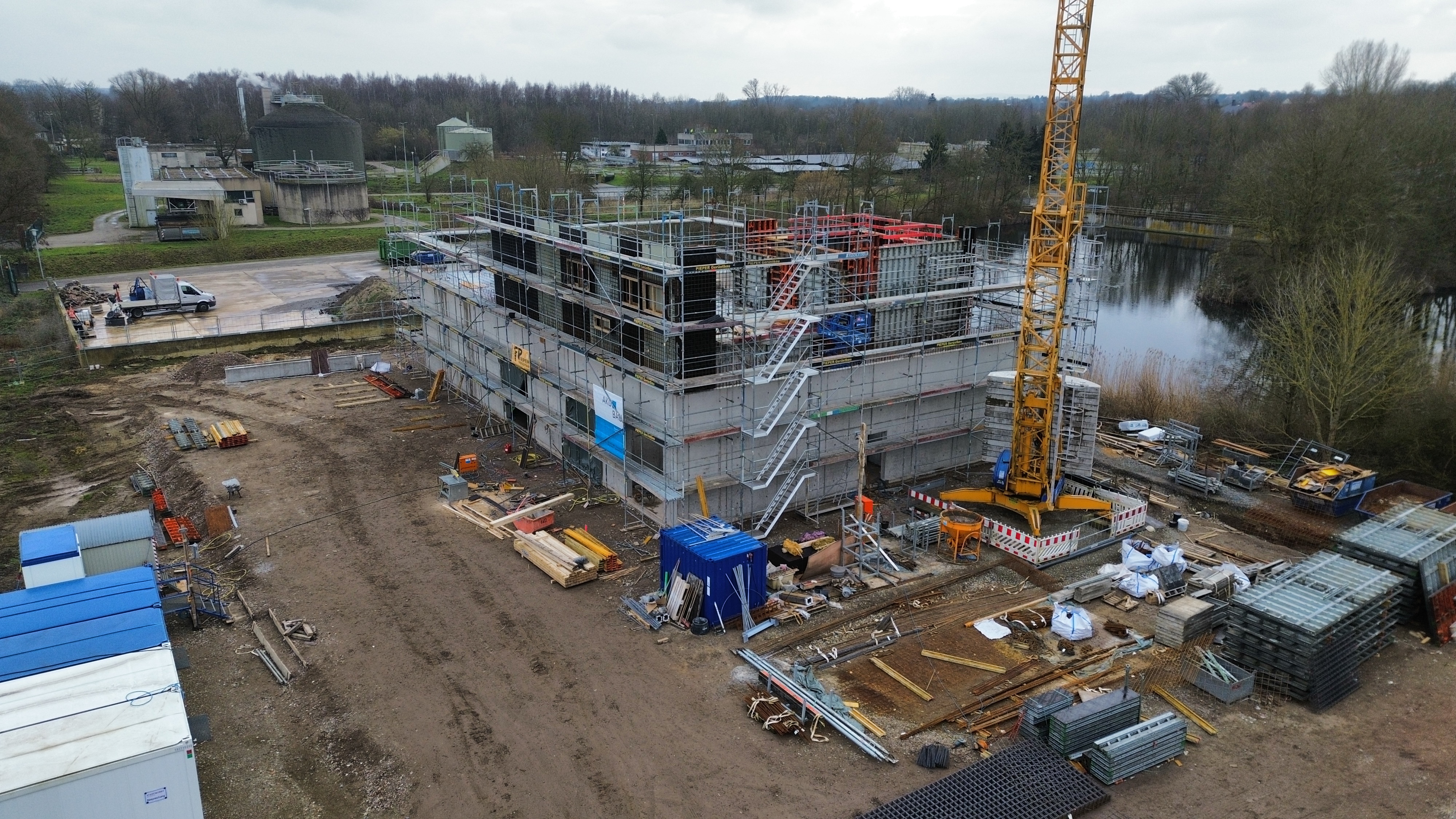 An der neu entstehenden Stadtwerke-Energiezentrale an der Ziegelstraße ist schon viel passiert. Die Gebäude des technisch Innovativen Großprojekts stehen bereits. In den nächsten Schritten wird die Energietechnik installiert. Ende nächsten Jahres soll dann alles fertig sein.