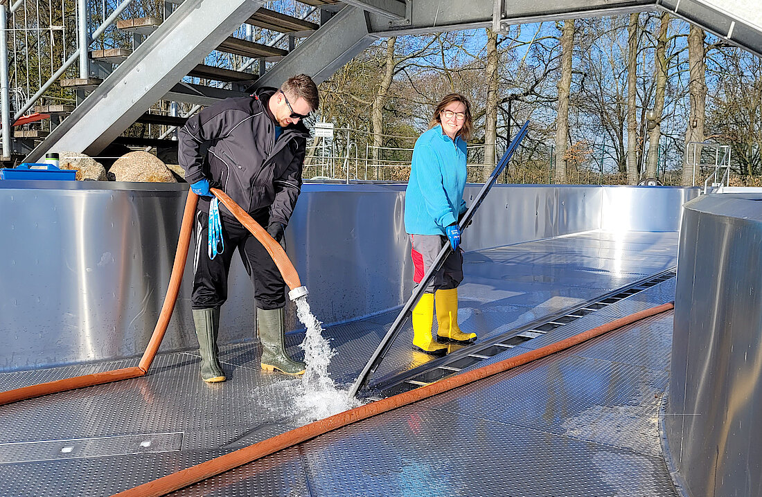 Kurz vor der Eröffnung lassen die Stadtwerke noch die Rettungsfähigkeit durch die DLRG abnehmen. Das heißt, dass die Kolleginnen und Kollegen das Deutsche Rettungsschwimmabzeichen Silber absolvieren. Dazu gehört beispielsweise das Schwimmen auf Zeit (auch in Kleidung), Transportschwimmen, Tauchen, Einsatz von Rettungsgeräten und Erste-Hilfe-Leistungen.