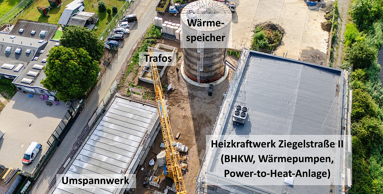 An der neu entstehenden Stadtwerke-Energiezentrale an der Ziegelstraße ist schon viel passiert. Die Gebäude des technisch Innovativen Großprojekts stehen bereits. In den nächsten Schritten wird die Energietechnik installiert. Ende nächsten Jahres soll dann alles fertig sein.
