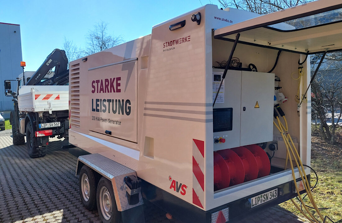 Mit dem neuen Notstromaggregat sorgen die Stadtwerke Bad Salzuflen zu den bestehenden mobilen Geräten dafür, die Versorgungssicherheit zu jeder Tages- und Nachtzeit zu gewährleisten. Vorrangig sollen mit diesem Gerät im Ernstfall die Wasserbrunnen mit Strom versorgt werden, damit weiter Grundwasser gefördert werden kann. Das Aggregat kann aber auch bei unerwarteten Netzausfällen die Stromversorgung aufrechterhalten.