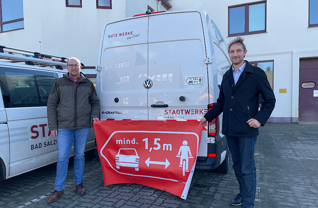 Bad Salzuflen. Die Stadtwerke Bad Salzuflen setzen sich gemeinsam mit der Radverkehrsförderung des Kreises Lippe für die Einhaltung des vorgeschriebenen Sicherheitsabstandes zwischen Kraftfahrzeugen und Radfahrern ein.